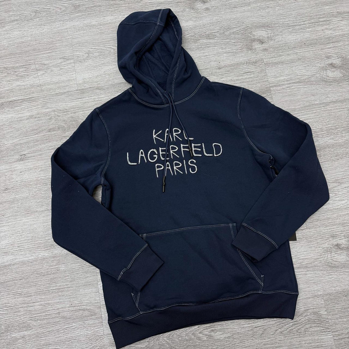 - Detalle: Letras Karl Lagerfeld en el pecho